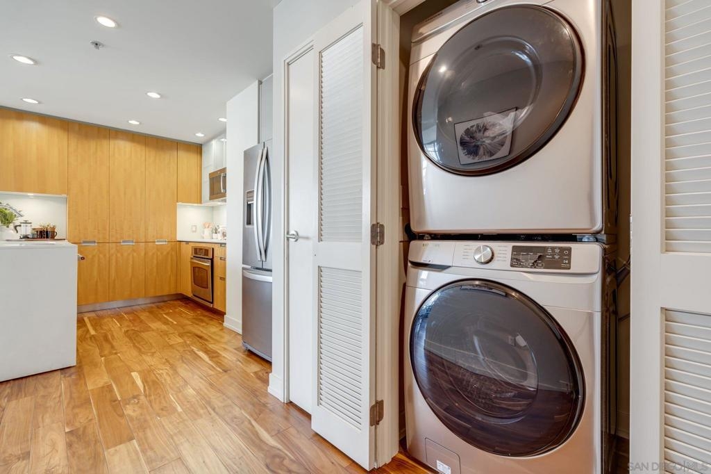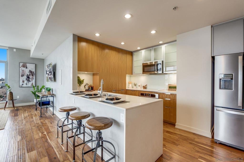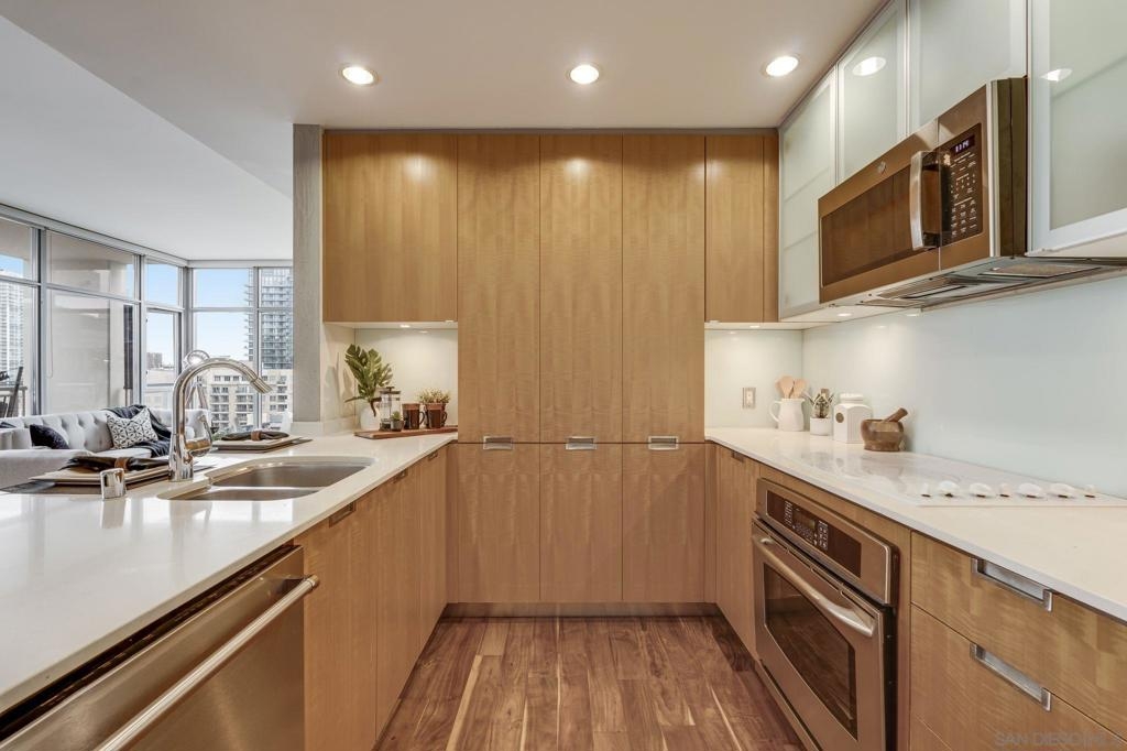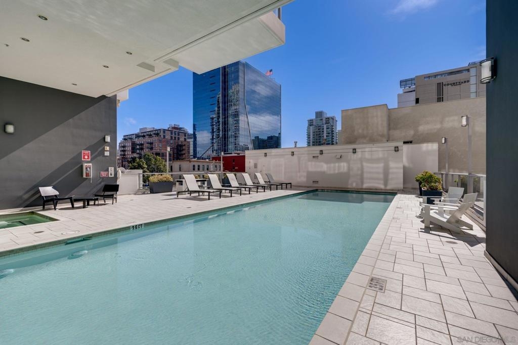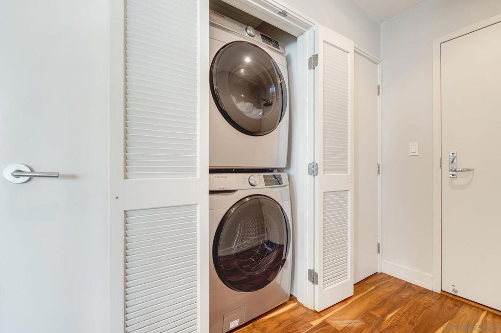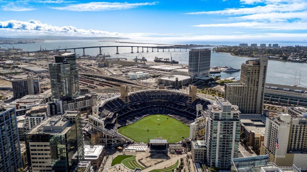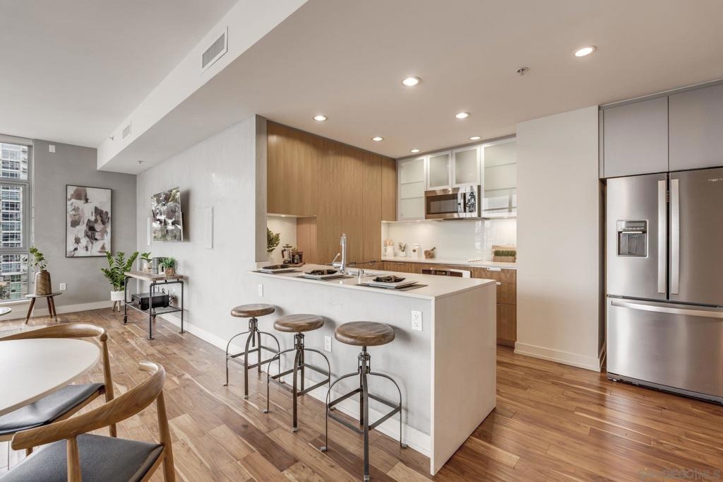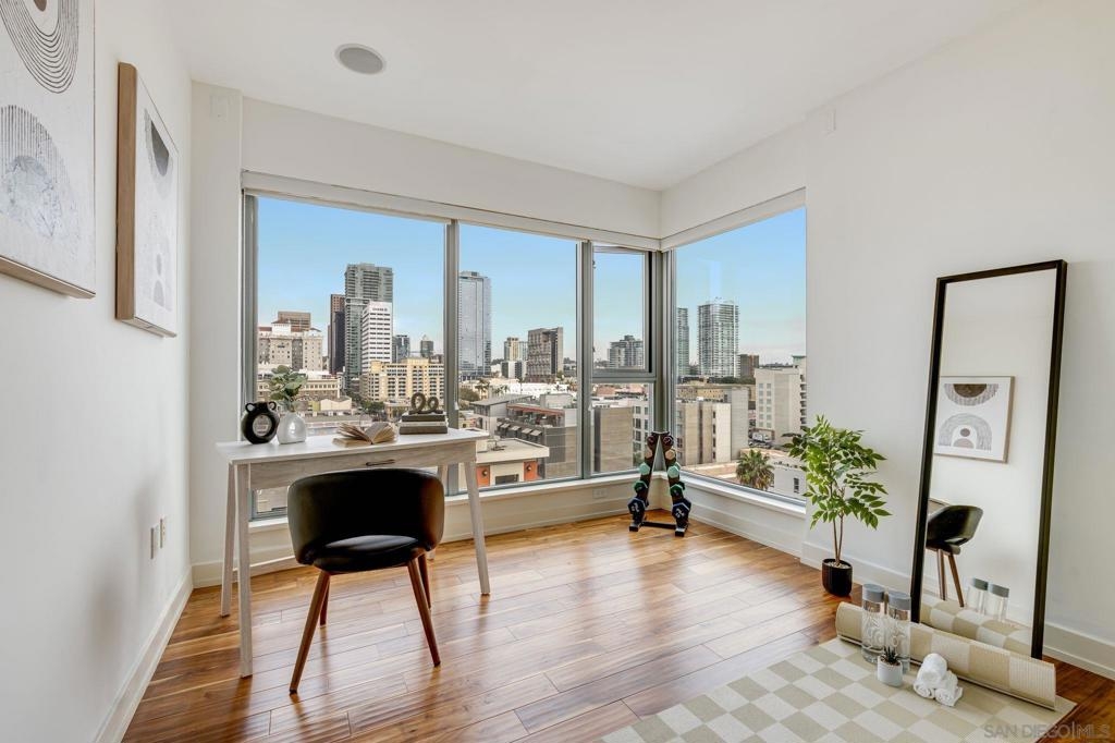 Incredible opportunity in East Village! This is Alta’s most coveted floor plan—boasting an open-concept layout, walls of glass, and sweeping panoramic city views. Step out onto the oversized terrace that seamlessly extends your living space, perfect for entertaining or relaxing above the vibrant energy of Downtown San Diego. This sleek 2-bedroom, 2-bath condo is thoughtfully upgraded with hardwood floors, a modern European-style kitchen, custom sound system, and convenient in-unit laundry. Located in a contemporary high-rise, residents enjoy secured access, two tandem parking spaces, and additional storage in the garage. The exclusive Alta Community, just 2 blocks from Petco Park, vibrant Gaslamp Quarter, East Village, Little Italy, Convention Center, and an array of over 100 exceptional restaurants. The Alta offers unparalleled convenience, security and amenities including a fully equipped gym, pool, community room, and one of the lowest HOA communities downtown. This is urban living at its finest. Seller willing to pay Buyer's first year of HOA dues for accepted offer. Expires 8/1/25.