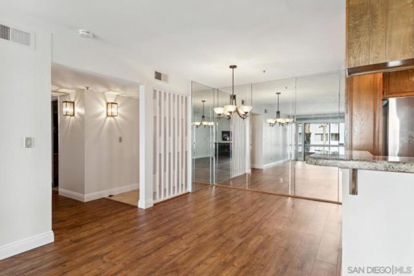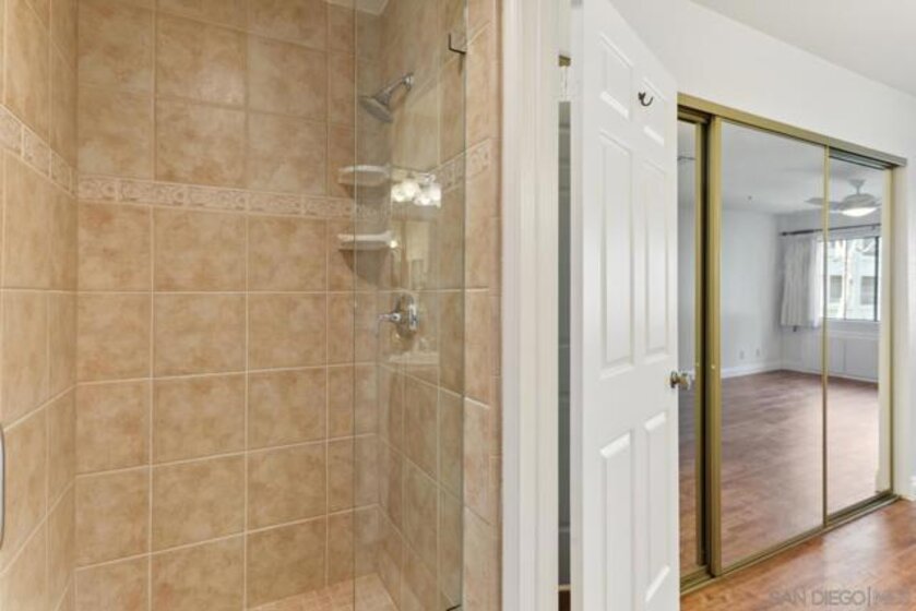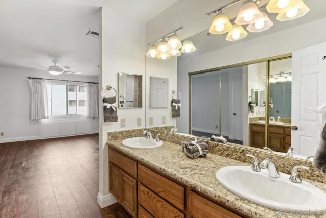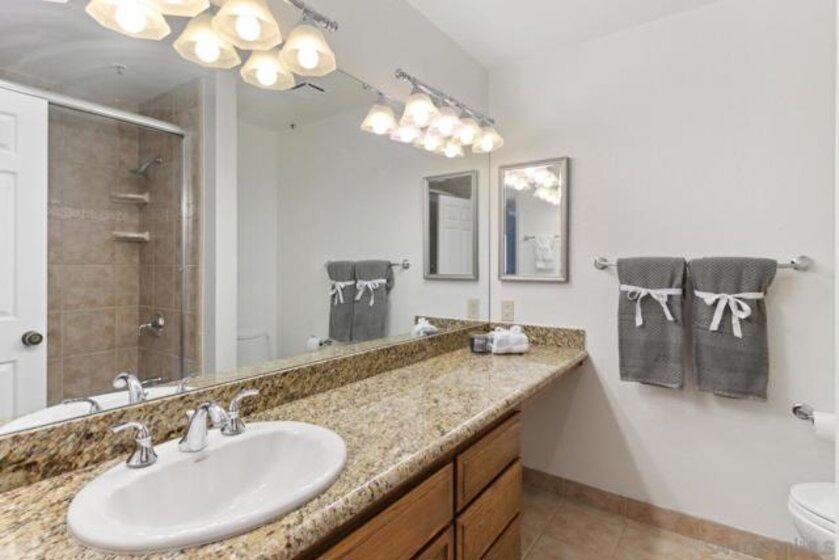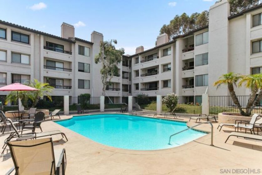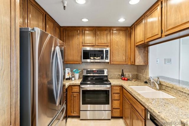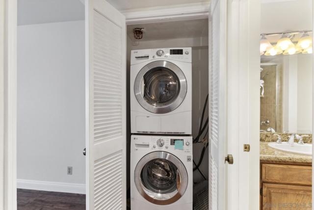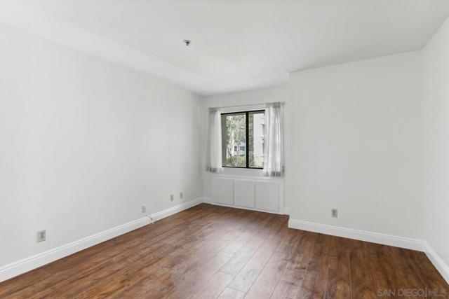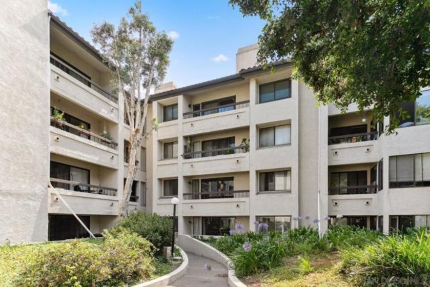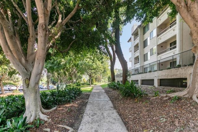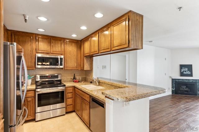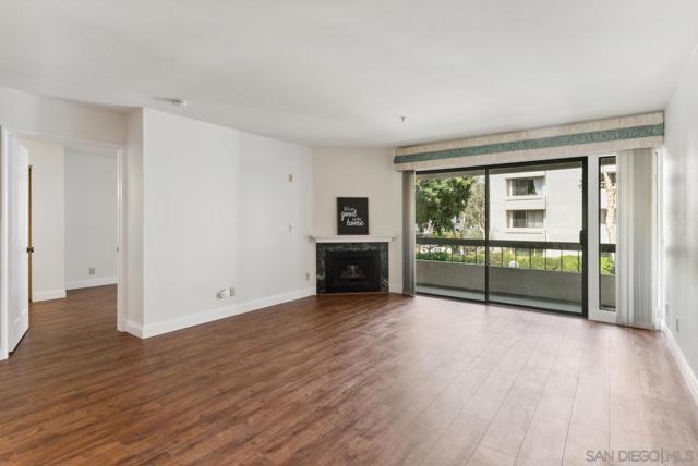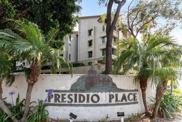 Located in west Mission Valley's Presidio Place, this freshly painted condo features an airy living room with working fireplace and balcony access, a large primary bedroom and ensuite bathroom with double-sink vanity, tiled shower enclosure, and large closet. This home also has central heating & A/C, laundry closet with washer & dryer, and vinyl plank flooring throughout the living areas. The kitchen was remodeled with granite counters, stainless steel appliances and recessed lighting. Updated bathrooms feature granite counters and tiled bath/showers. This unit also has its own private storage closet just next door! Gated, underground parking with an assigned space and permanent guest pass. There's even a secure bike storage area so you can enjoy rides along the nearby bike paths! Presidio Place features tennis courts, pool & spa, walking paths, guest parking and 24 hour security staff. There's also community laundry facilities in addition to your private in-unit one. Conveniently located near Fashion Valley & Mission Valley malls, shopping centers, highway access, trolley stations, schools, beaches and so much more!