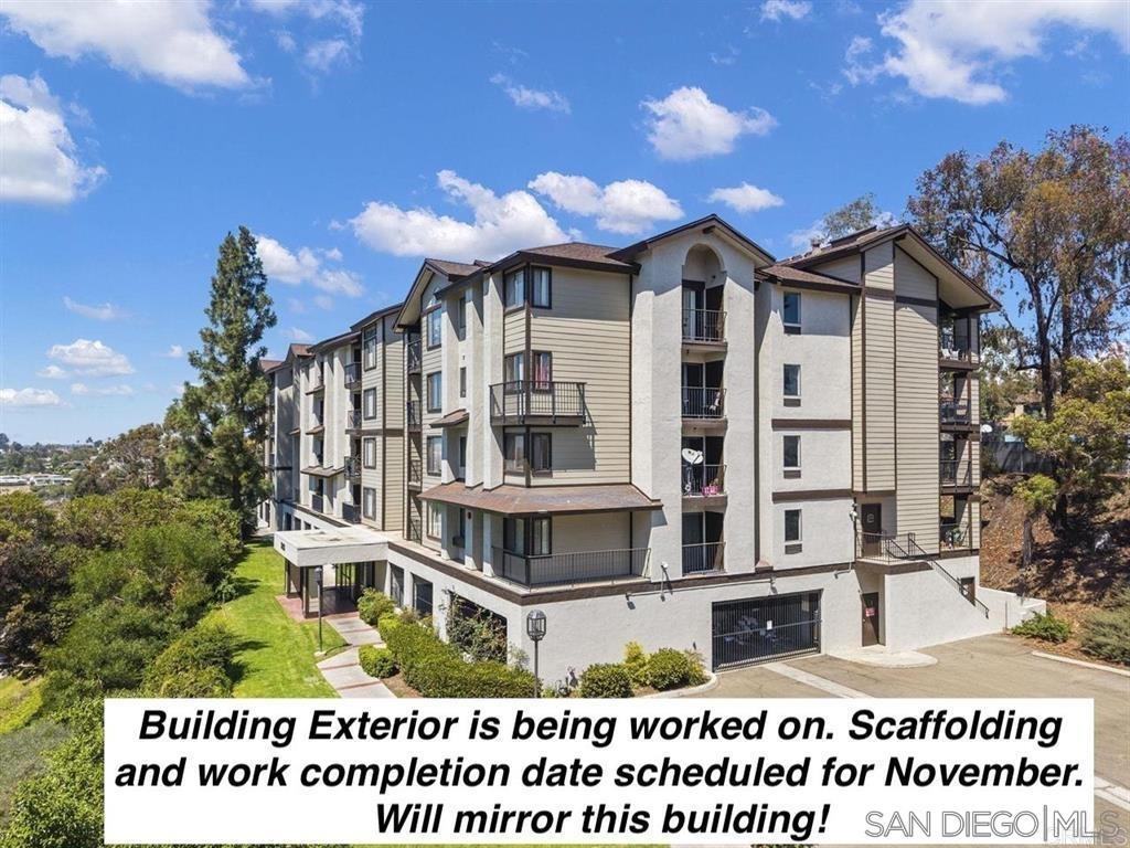 Welcome home to this bright and stylish 2-bed, 2-bath condo on the top (4th) floor, offering vaulted ceilings, abundant natural light, and no neighbors above you for added privacy and quiet. Enjoy freshly painted designer cabinets, updated fixtures, wood-style flooring, new carpet in bedrooms and tile in kitchen and bathrooms, plus in-unit laundry and extra balcony storage. The spacious primary suite features high ceilings, double closets, and a generous vanity. **Newer Heater & AC system** (installed 2023) and **secure gated parking**. The building exterior is currently undergoing renovation, adding fresh curb appeal and long-term value to the property. Anticipated completion by the end of 2025. Conveniently located near SDSU, freeways, shopping, and dining, just 20 minutes to the beach, downtown, and naval bases. Perfect for first-time buyers, military families, students, professionals, or investors seeking a move-in-ready home in a quiet, improving community.