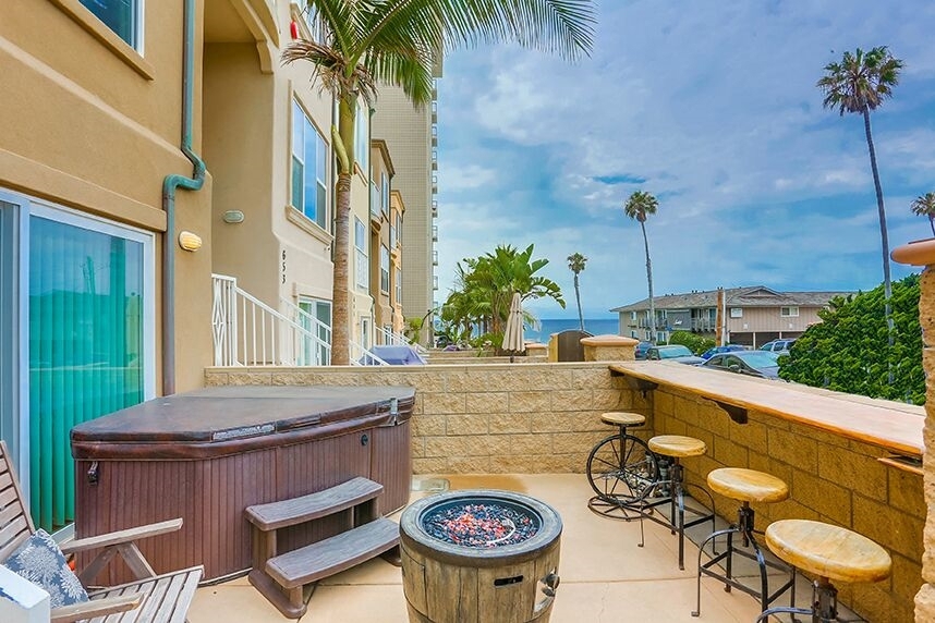 Incredible Walk-ability & Ocean VIEWS from this Rare 4BR/4BA townhome, West of Mission Blvd. All 4 Bedrooms have their own en suite Bathroom. Enjoy Sipping coffee or sunset drinks on your ocean & sunset view patio or slide upstairs to your Master Suite with private deck, spacious master bath with dual sinks, granite counters & large walk in closet. "California Dream Life" just steps to the surf, sand, boardwalk & Solar Powered Beach Home! Rare North Pacific Beach location! NO HOA fee & Large 2 Car Garage Walk to surf, watch the dolphins or ride your bike from this turnkey tri-level ocean view townhome…So Cal Living! Floor Plan: 1) First Floor = Large epoxy coated 2 car garage/storage with direct access to interior. 4th BR and 4th bathroom on 1st floor with sliding door patio access direct to ocean view patio 2) 2nd Floor = living room with bamboo floors, kitchen with stainless appliances, bar stool seating & 2nd BR/2nd Bath. 3) 3rd Floor = Spacious Master Suite, master bath with walk-in closet, tile bathrooms, then 3rd BR/3rd Bath en-suite + large laundry Closet for Washer-Dryer near bedrooms. AREA: Location west of Blvd, steps to sand, surf, famous boardwalk, numerous restaurants & Law St Beach/Park is best of the best. Live your best coastal life from this amazing 4BR/4BA property in Pacific Beach.. Neighborhoods: Pacific Beach Other Fees: 0 Sewer: Sewer Connected Topography: LL