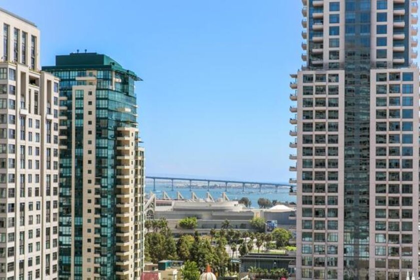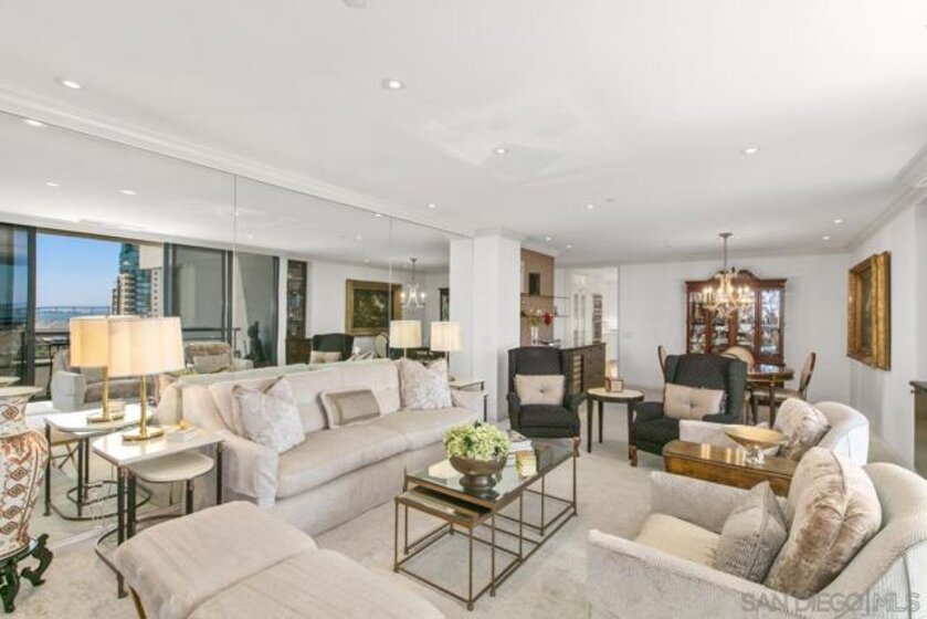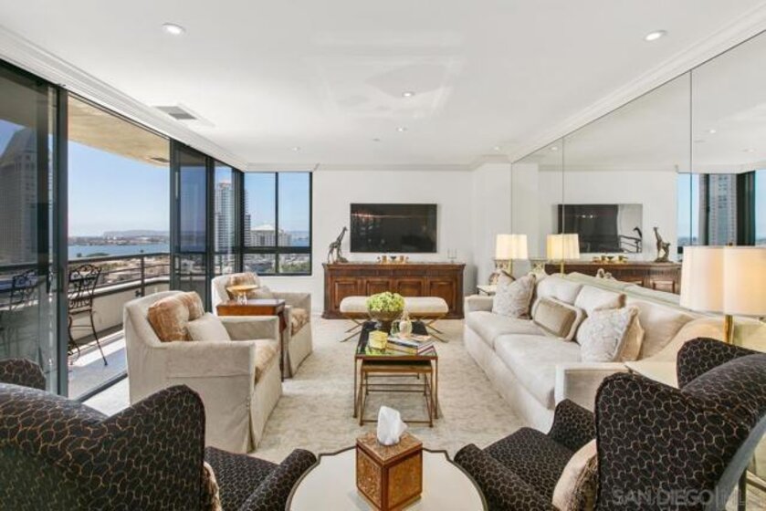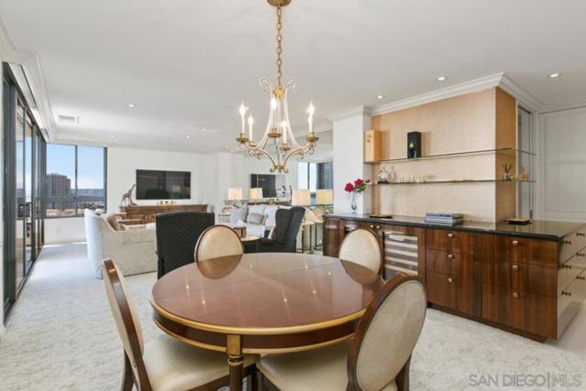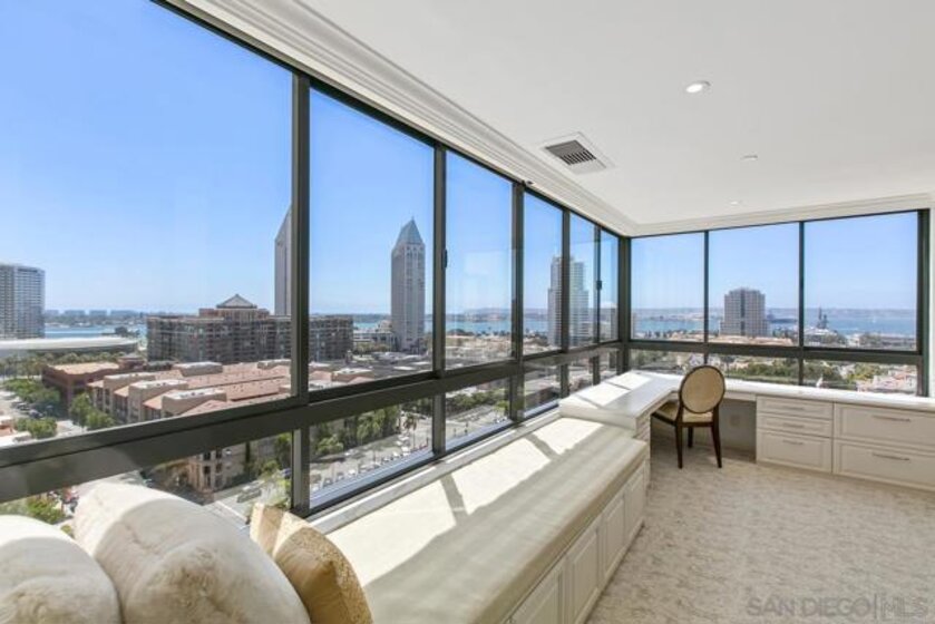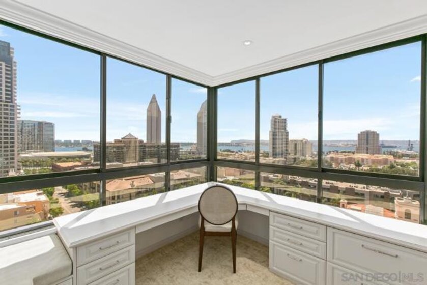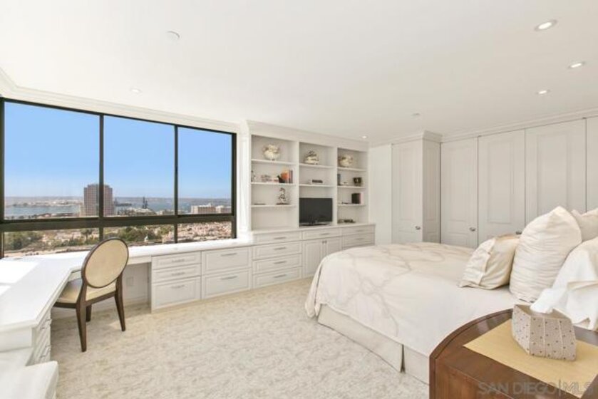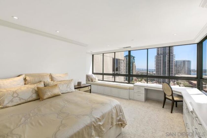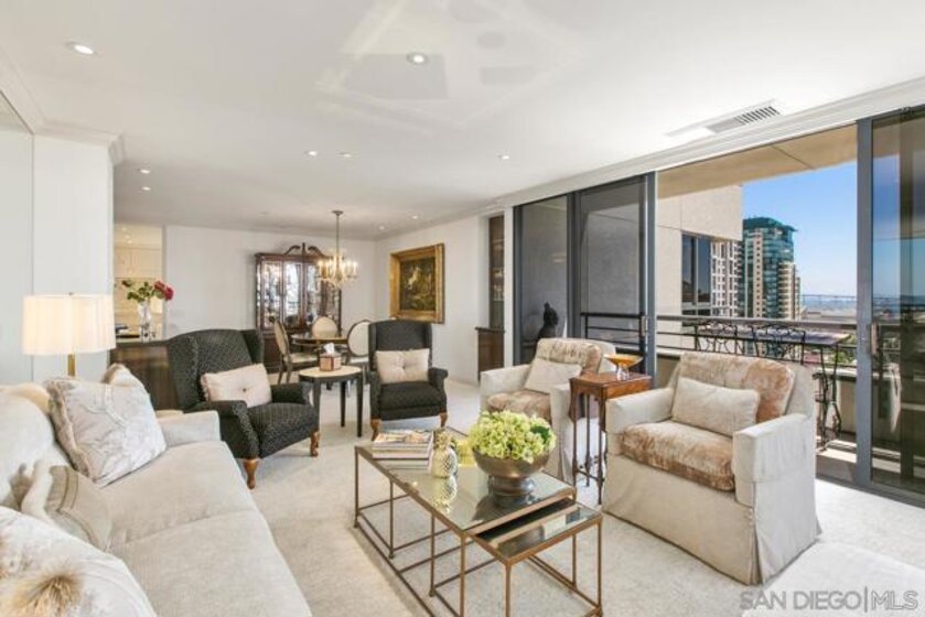 Welcome to MERIDIAN Condominiums 1004...Imagine a life where luxury is a lifestyle beyond expectations, convenience, elegant service and style. Stunning panoramic views of the exciting city, sparkling active bay and Pacific Ocean sweeping from Mexico to Point Loma can be enjoyed all year round. Completely remodeled in recent years by master craftsmen and expertly designed by noted interior designer Gretchen Kennelly, classic sophistication reigns in this beautifully crafted, inviting home. High-end designer finishes and top-of-the-line Thermador and SubZero appliances, Rohl, Hansgrohe, American Standard, and more complement the exceptional custom built-in storage and detailed features. Experience the refreshing breezes with wide-opening sliding doors and seamless access to the viewing balcony. Wrap-around windows in the primary bedroom frame the exceptional views with rejuvenating breezes. Don't miss this rarefied opportunity. Complete with designer furnishings. MERIDIAN CONDOMINIUMS, a landmark residential community deliberately conceived and impeccably crafted, remains without peer. Incomparable services are offered by an attentive staff consisting of 24 hour Parking Attendants for Residents and their Guests, Door Person, Porter, Concierge and more. A completely separate service entry with loading dock and service elevator is staffed with Porters to accept packages, deliveries and tradespeople. For your convenience, groceries, packages, dry cleaning, luggage and more can be delivered to your door! Impeccably maintained, pride of ownership abounds. Whether you are entertaining on a grand scale or merely relaxing by the sparkling pool, MERIDIAN’s accommodations are sure to exceed your expectations. Greeted by a sophisticated private art gallery, the plaza level boasts limitless accommodations to guests and residents alike. The MERIDIAN Room, designed with a catering kitchen, bar, cloakroom, and restrooms offers an elegant entertaining environment for both large-scale and intimate parties. Elegant formal gardens, a grove of citrus trees, an outdoor spa, and an adjoining fire pit complement the inviting pool and lounging/sunning areas on the unique 2/3 of an acre outdoor plaza elevated above the cityscape. Other features adding to the convenience and comfort at MERIDIAN include two resort-caliber spa and fitness facilities, five lovely Guest Suites to welcome visiting friends and family, and a Conference Room ideal for business meetings and presentations or small-scale entertaining. At the foot of MERIDIAN lies MERIDIAN PLACE, offering a myriad of fine retailers to conveniently complete the needs of your lifestyle. Salon and spa services, cosmetic dentistry, dry cleaning, fine dining, and much more are literally an elevator ride away. Take advantage of MERIDIAN’s premier downtown location and explore the countless restaurants, cultural attractions, and miles of scenic pathways. Enjoy a lifestyle that is without parallel . . .enjoy MERIDIAN living!