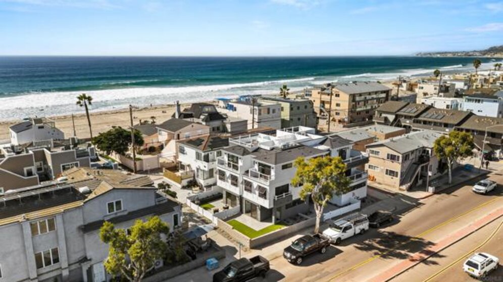 Introducing the Fantasket 3 Townhomes, a sleek and modern coastal Cape Cod–style new construction development featuring three luxury residences on the ocean side of Mission Beach. Built by a highly reputable local builder and backed by a full builder warranty, each 3-bedroom, 3-bath home spans three thoughtfully designed levels, offering the ultimate in low-maintenance, modern beach living. The first floor includes a welcoming front porch entry and a direct-access, side-by-side two-car garage. The second floor features an open-concept living space with two balconies, a contemporary kitchen with stainless steel appliances, a dining area, a laundry closet, and a bedroom with a full bath. Upstairs, the third floor showcases a stunning primary suite with a spa-inspired bathroom and wraparound balcony, along with a secondary suite featuring its own private balcony. The private rooftop deck captures 360° panoramic views of Mission Beach, the Pacific Ocean, and Mission Bay—ideal for entertaining or soaking in the sunsets. Additional highlights include Atlantis waterproof luxury vinyl plank flooring, designer finishes, wainscoting detail, central heating and A/C splits, and in-unit laundry. Located just steps from the sand and walking distance to Belmont Park, Bonita Cove, Fit Athletic Club, The Plunge, and top local dining, this home is perfectly suited for a full-time coastal lifestyle, vacation retreat, or premium investment property. This is a rare opportunity to own a brand-new, modern coastal home in one of San Diego’s most desirable beachfront communities.
