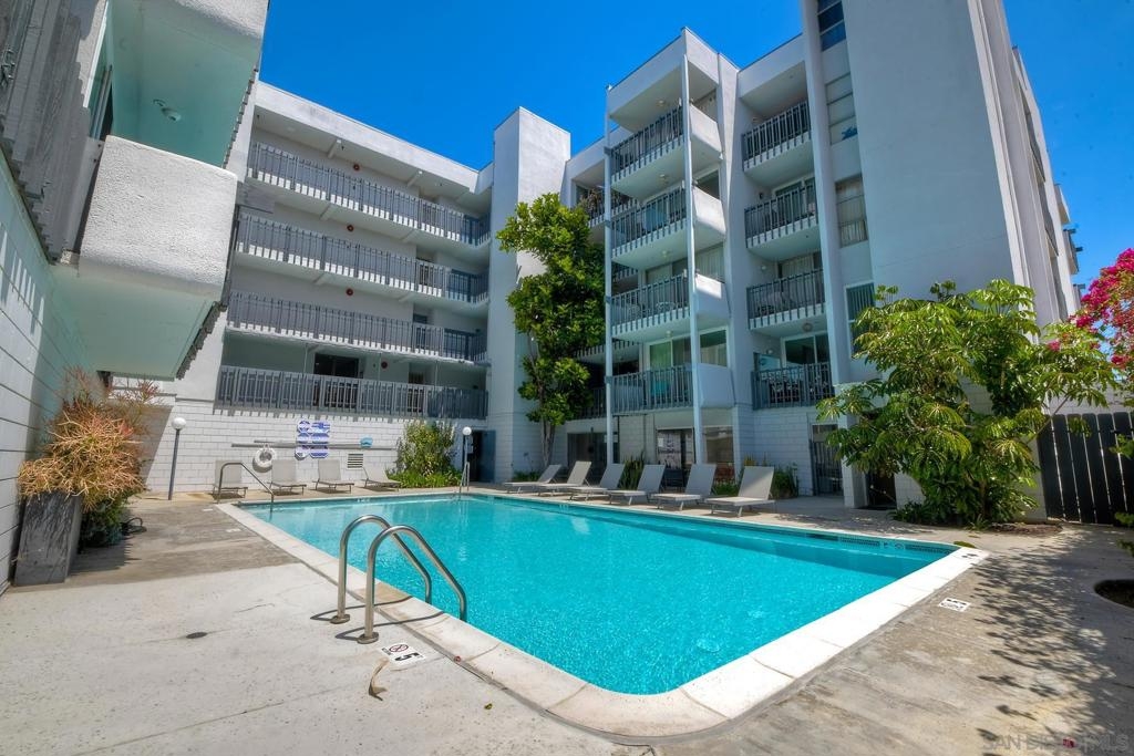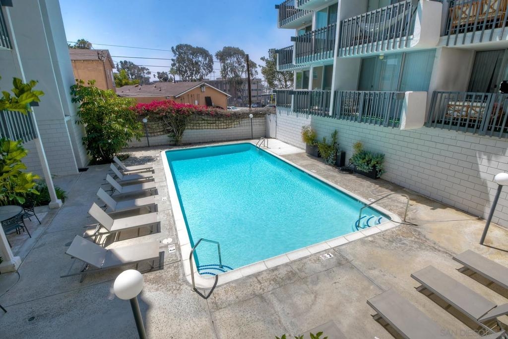 BEACH LOVERS! Ocean breezes and vibrant sunsets greet you from this sought-after North Pacific Beach top floor studio across from Tourmaline Beach Park! Lounge on your ocean-view balcony or swim in the year-round heated saltwater swimming pool. New flooring and fresh paint. Gated building and underground parking. Steps to beach, grocery store, coffee shops, restaurants, and more. Property is located in the La Jolla School district. Complex Features: ,,, Sewer: Sewer Connected Topography: LL