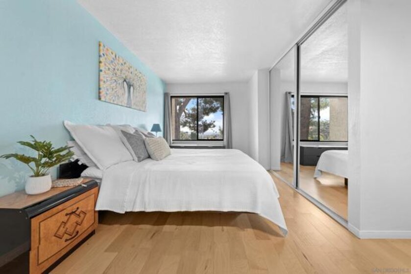 This charming 2-bed, 2-bath condo in Del Cerro offers breathtaking views and is the perfect home for first-time buyers or investors alike. Located on the second floor, this end unit is bathed in natural light and offers an open, spacious feel throughout. Step into the inviting living area that opens up to a serene patio, ideal for sipping your morning coffee or enjoying a good book. The modern kitchen seamlessly blends convenience and style, making it a joy to cook and entertain. The generously sized primary bedroom is a standout feature, offering ample space for an office, crib, or cozy sitting area—perfect for a variety of needs. Both bathrooms have been thoughtfully updated with elegant marble showers and floors, providing a touch of luxury. Relax and unwind by the gorgeous pool or soak in the hot tub on your days off. Plus, with highly rated elementary, middle, and high schools just a short walk away, this location is ideal for families. This gem won't last long—don't miss out!