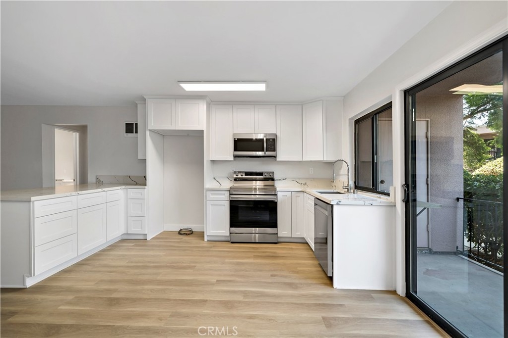Welcome to your beautifully renovated oasis in the community of San Carlos Greens! This light and bright 2-bedroom, 2-bath ground floor condo boasts an inviting open floor plan, perfect for both relaxing and entertaining. As you step inside, you’ll be greeted by stunning vinyl plank flooring that flows seamlessly throughout the entire space. The upgraded baseboards and new light fixtures add a touch of modern elegance, creating a warm and welcoming atmosphere. The spacious living area is bathed in natural light, with a sliding door that leads to your private patio—a perfect spot for morning coffee or evening relaxation. Enjoy the convenience of a storage closet right outside, making it easy to keep your outdoor space tidy. The heart of this home is the beautifully updated kitchen, featuring brand new cabinets and countertops that provide both style and functionality. You’ll love cooking with the new stainless steel appliances, which add a sleek finish to the space. Both bedrooms offer ample space and natural light, with the primary suite boasting its own en-suite bath for added privacy and convenience. Located in the desirable San Carlos Greens community with shared laundry room, pool and spa, you'll enjoy easy access to top rated schools, local amenities, parks, and more. Don’t miss out on this incredible opportunity to own a move-in ready condo that combines modern upgrades with comfort. Schedule your showing today and make this charming condo your new home!