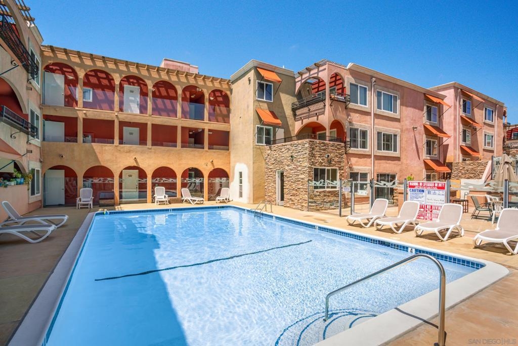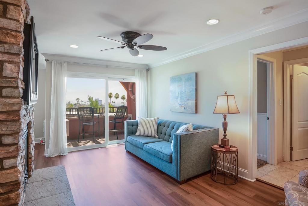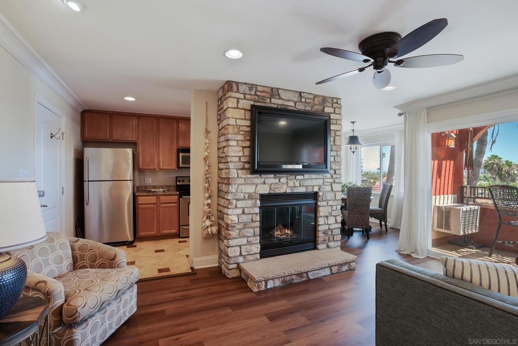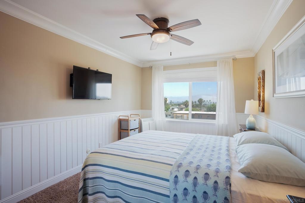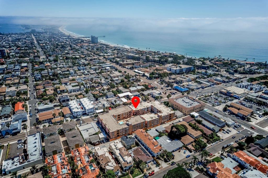 Live the true Southern California lifestyle in one of San Diego's finest neighborhoods and buildings in beautiful North Pacific Beach. This highly secured, resort-style building is located on coveted Turquoise St., where the beach, top restaurants, and shopping all meet. This ocean-view, top-floor unit boasts a custom stone fireplace, fresh paint, luxury vinyl plank flooring, recessed lighting, A/C, crown molding, natural light throughout, and a spacious southwest-facing balcony with panoramic views of the ocean, Mission Bay, and Downtown Skyline. Enjoy the coastal breeze off your private balcony, watch the sunset while you cook from the kitchen, and wake up to water views from your bed every morning. Building amenities include 2 Pools, Spa, Fitness Center/Sauna, Sunny Lounge Areas, BBQ grills, and 1 assigned parking spot in underground gated garage. Laundry rooms on each level. Just a short stroll to beautiful Tourmaline Beach, Bird Rock/La Jolla, fitness studios, coffee shops, restaurants, and grocery shopping.