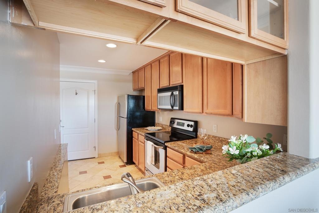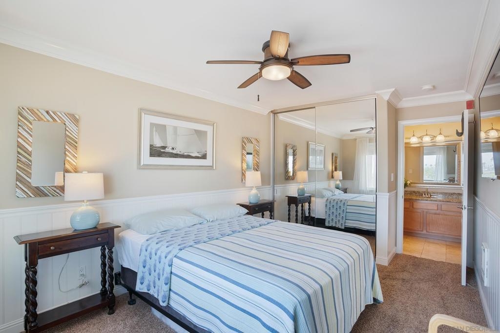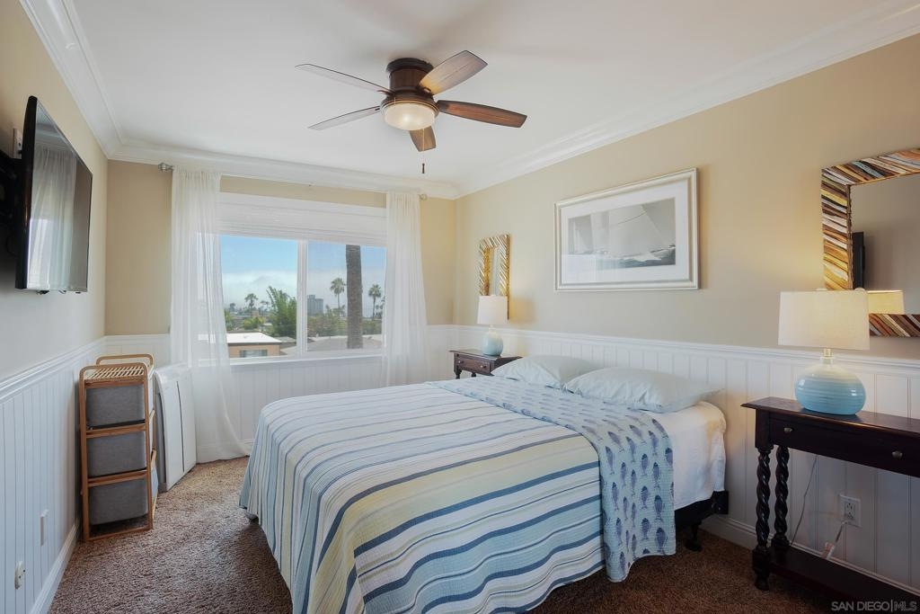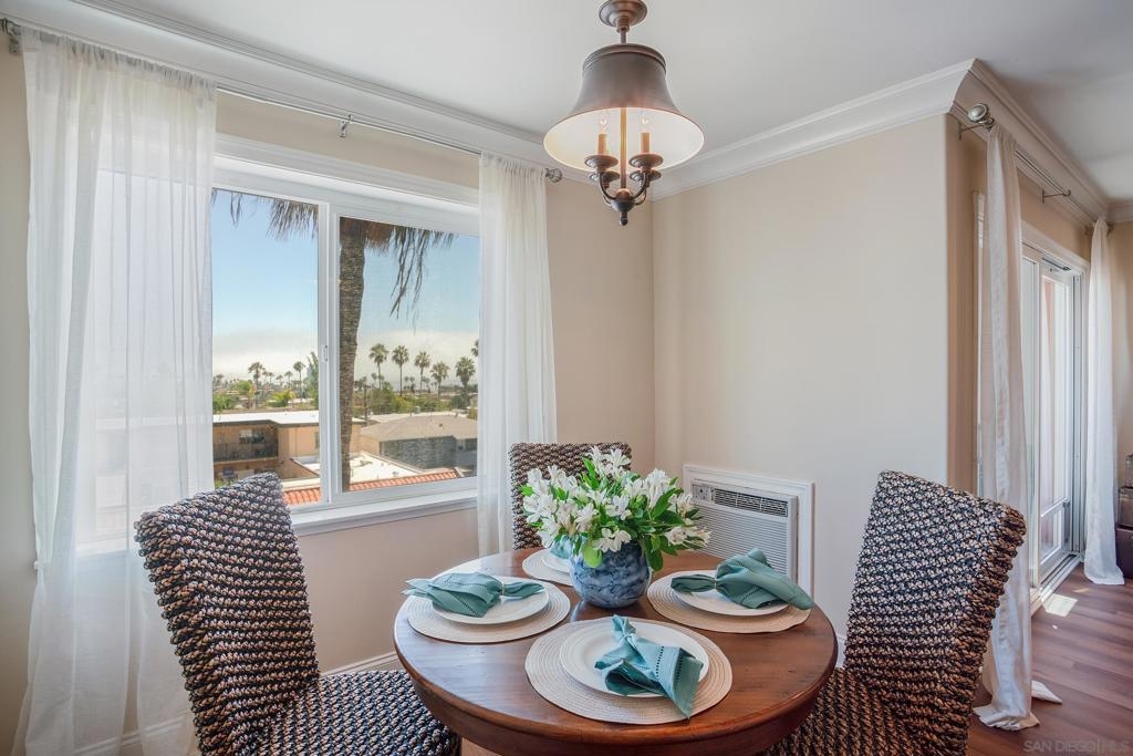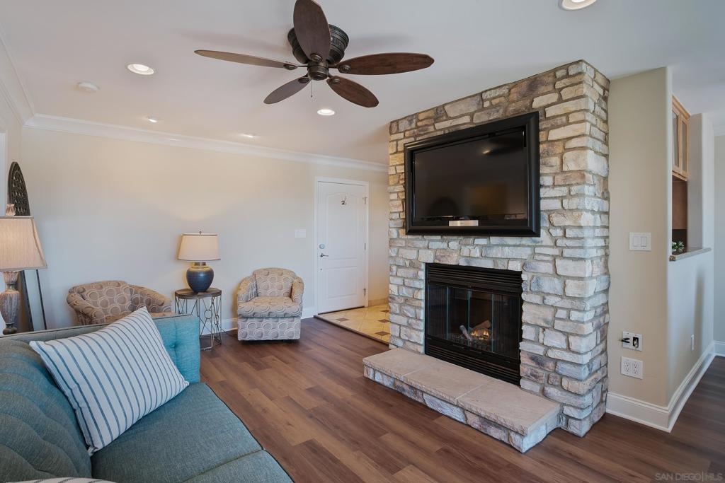 Live the true Southern California lifestyle in one of San Diego's finest neighborhoods and buildings in beautiful North Pacific Beach. This highly secured, resort-style building is located on coveted Turquoise St., where the beach, top restaurants, and shopping all meet. This ocean-view, top-floor unit boasts a custom stone fireplace, fresh paint, luxury vinyl plank flooring, recessed lighting, A/C, crown molding, natural light throughout, and a spacious southwest-facing balcony with panoramic views of the ocean, Mission Bay, and Downtown Skyline. Enjoy the coastal breeze off your private balcony, watch the sunset while you cook from the kitchen, and wake up to water views from your bed every morning. Building amenities include 2 Pools, Spa, Fitness Center/Sauna, Sunny Lounge Areas, BBQ grills, and 1 assigned parking spot in underground gated garage. Laundry rooms on each level. Just a short stroll to beautiful Tourmaline Beach, Bird Rock/La Jolla, fitness studios, coffee shops, restaurants, and grocery shopping.