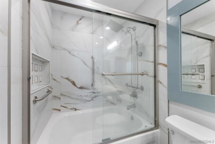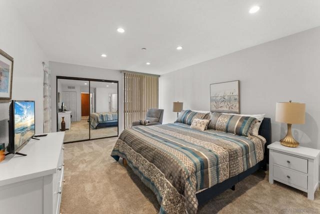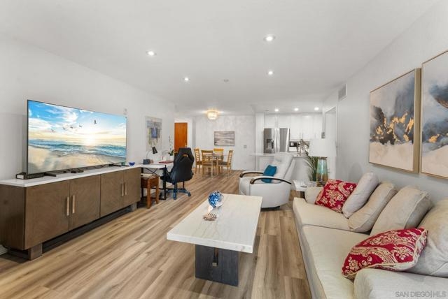 Welcome to your top floor urban sanctuary at Marina Park—an elegantly remodeled condo located in one of Downtown San Diego’s most desirable communities. Nestled in the quiet yet vibrant Marina District, this spacious 2-bedroom, 2-bath residence offers upscale living with all the modern comforts and walkable convenience of city life. Step inside to discover a light-filled open floor plan, thoughtfully designed with high-end finishes throughout. The remodeled kitchen boasts quartz countertops, sleek cabinetry, stainless steel appliances, and a breakfast bar perfect for casual dining or entertaining. The spacious living and dining areas flow seamlessly to a private balcony—your personal perch to unwind and enjoy city views. Retreat to a generously sized primary suite complete with a large walk-in closet and a spa-inspired en-suite bathroom featuring a modern vanity and beautiful tile work. Enjoy in-unit laundry and central A/C complete the package. Marina Park is a full-service community offering resort-style amenities including 24-hour security, two swimming pools, spa, fitness center, lush courtyards, and guest parking. Enjoy the best of Downtown—just steps from Seaport Village, the waterfront, Gaslamp Quarter, Little Italy, and PETCO Park. This turnkey home blends sophistication and location, making it ideal for full-time residents, second-home seekers, or savvy investors. Don’t miss your opportunity to live in one of Downtown’s most established and well-kept communities.