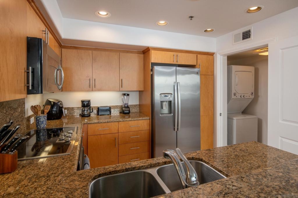 This amazing single level condo is less than 2 blocks to the beach in the heart of Downtown PB. Once you're home, you'll never need to drive with everything PB has to offer just a short walk away. The home is next to the Tuesday Farmer's Market, 24 Hour Fitness, Pueblo, The Grass Skirt, The Mad Beet and steps from lots of other amazing shops and restaurants. The unit boasts an amazing floor plan with bedrooms at either end of the unit with an open concept kitchen and living space in between. Plenty of outdoor space with 2 decks, in-unit laundry, 2 HUGE parking spaces large enough for a SUV or full-sized truck and lots of windows for natural light. Enjoy all that Downtown PB has to offer while enjoying privacy and quiet from this amazing condo.