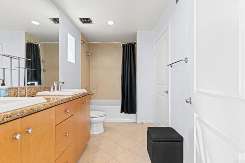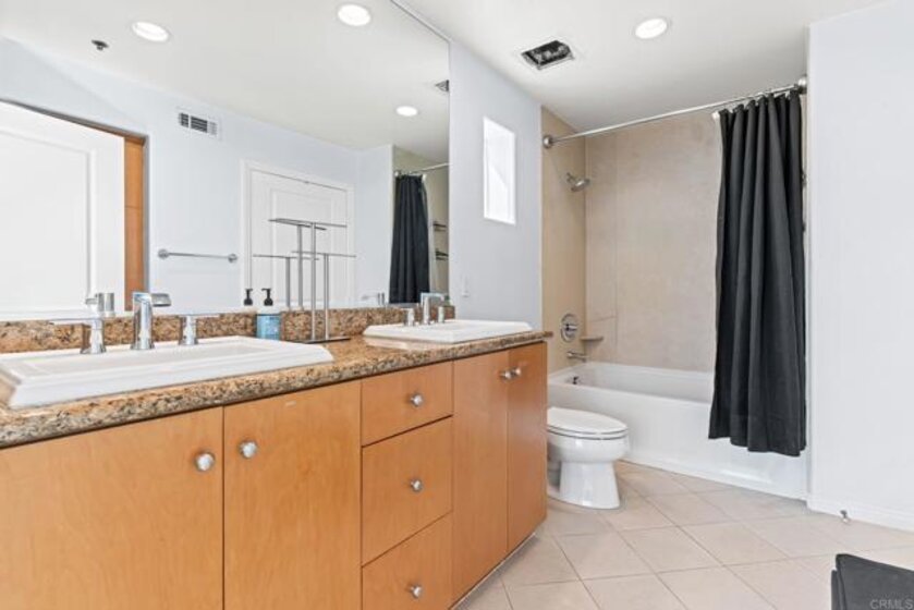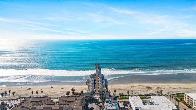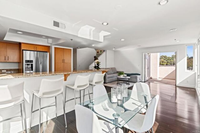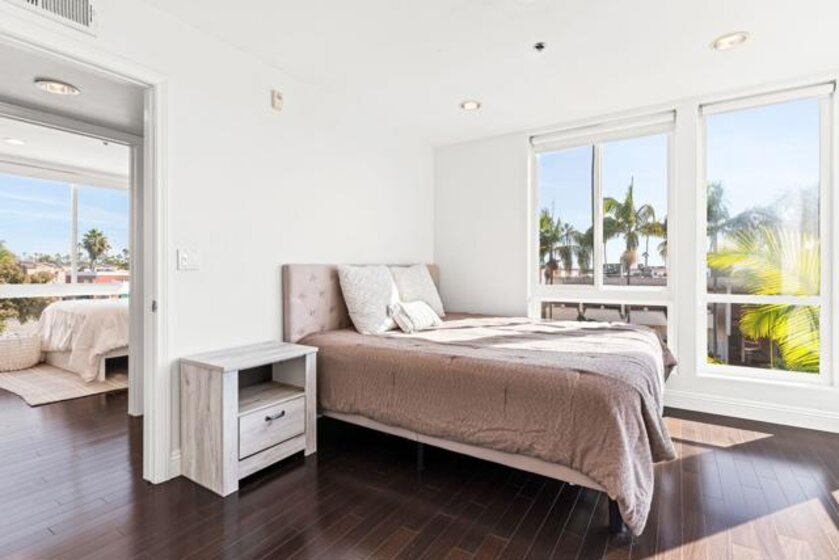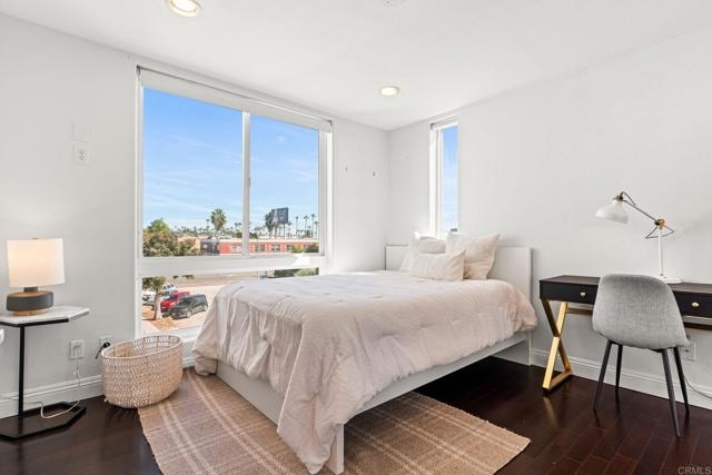 Just two blocks from the beach, this contemporary Pacific Beach condo puts beach living within easy reach! Located in a quiet, well-maintained complex, this two-story corner unit offers an open main level with tall windows, abundant natural light, and a private balcony. Both bedrooms are upstairs, each with its own ensuite bath, perfect for guests or roommates. No one above or below adds to the sense of privacy! Additional highlights include in-unit laundry and newer HVAC. Secure underground parking for two vehicles with EV wiring, plus private storage, bike storage, and secure elevator access. Steps to shopping, dining, and the PB Farmers Market—an ideal spot for the coastal life!